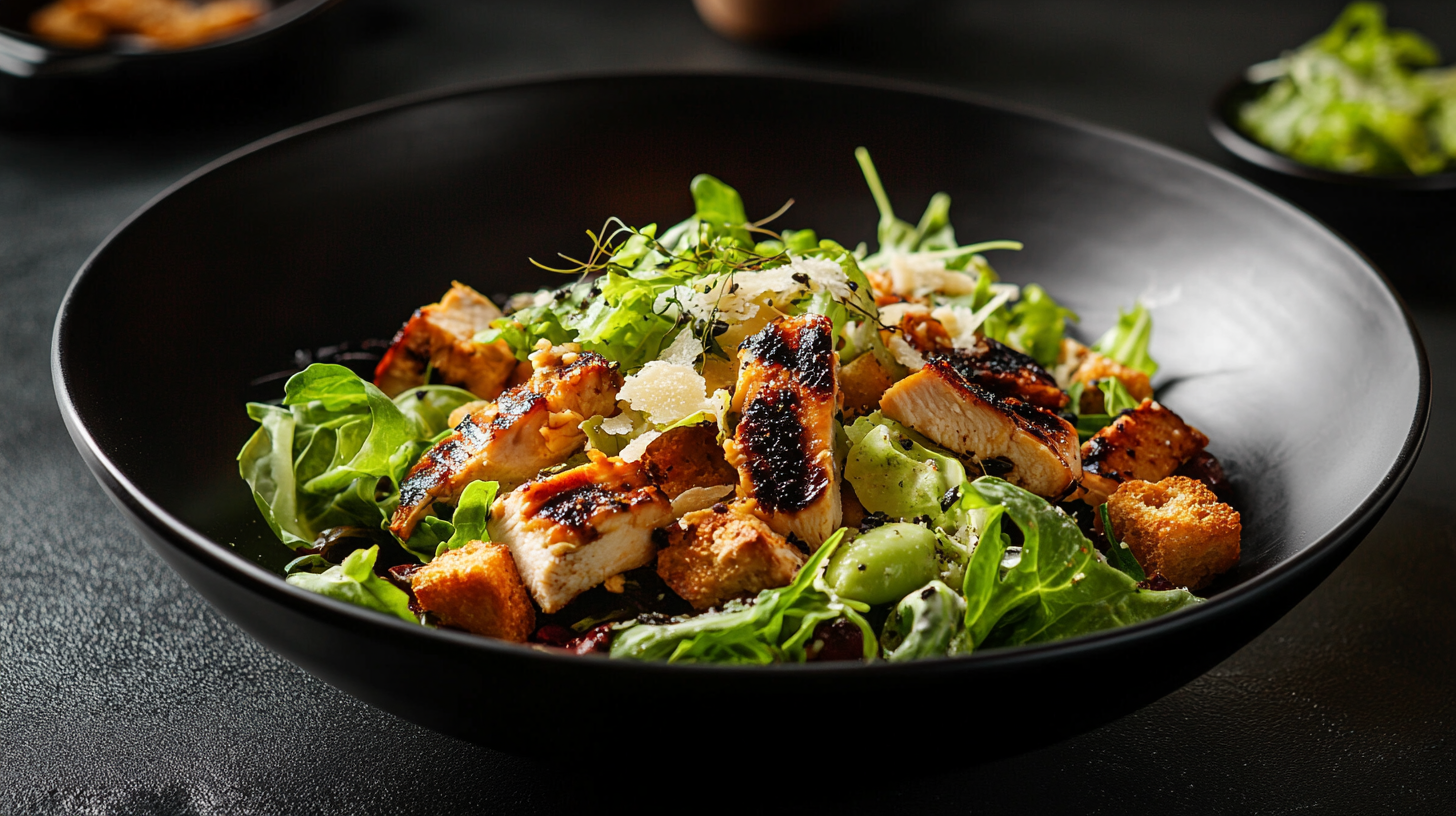 Lettuce, sous-vide chicken, crunchy 30-month parmesan chips, Caesar dressing