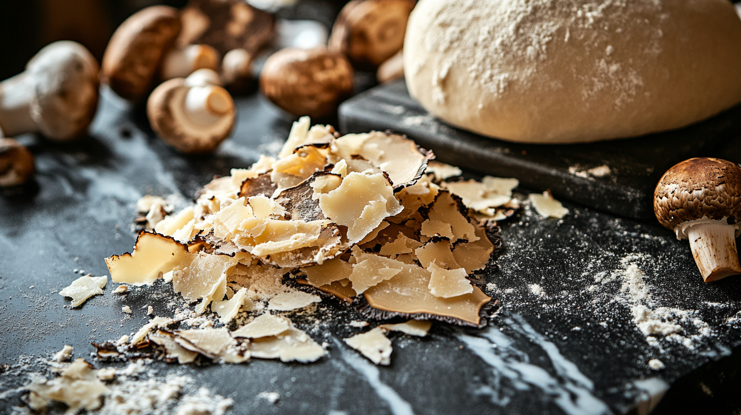 Fior di latte, sautéed cardoncelli mushrooms with butter and 30-month parmesan, then Fassona beef tartare, savory zabaglione and prized black truffle