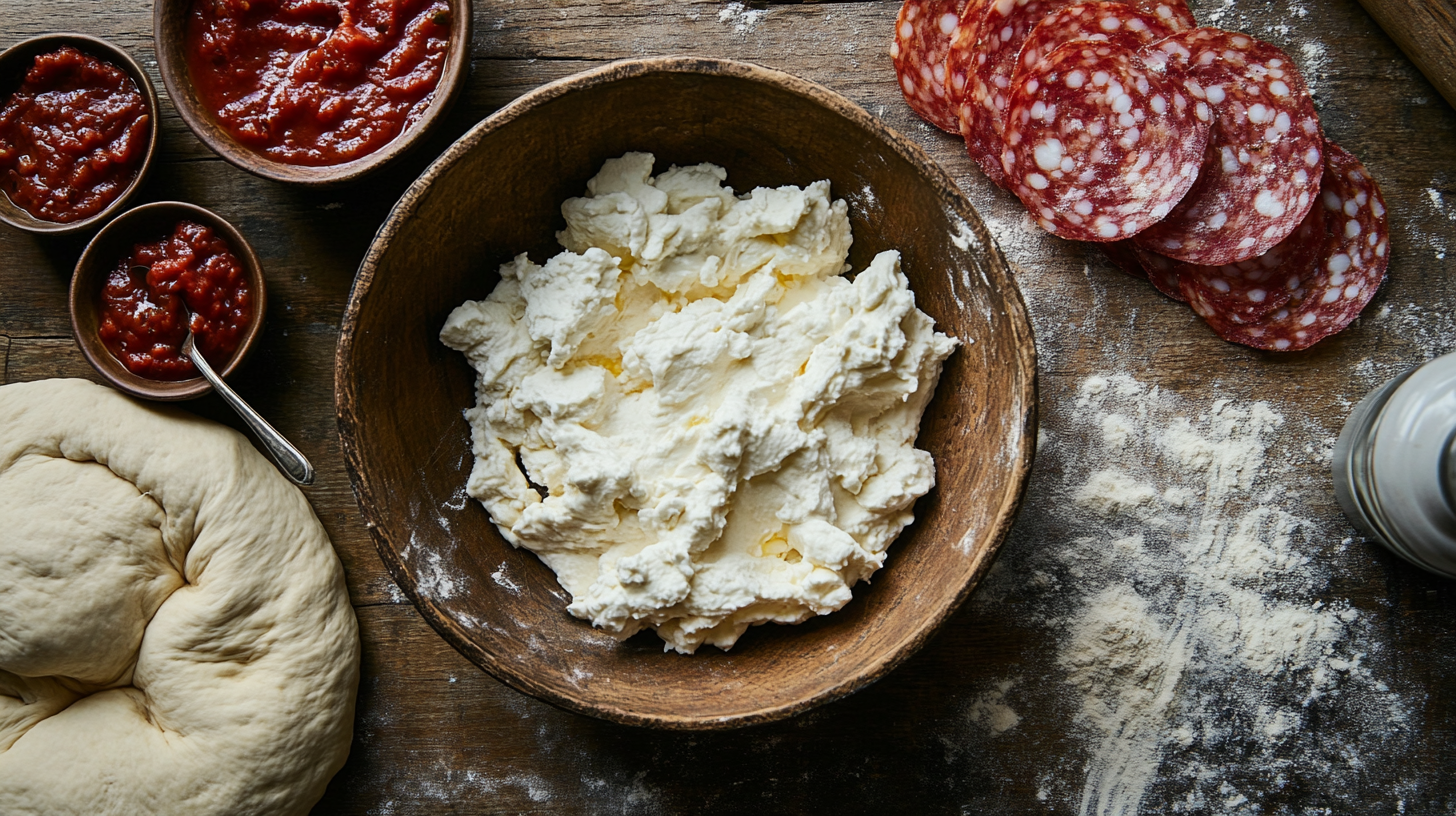 Buffalo ricotta, provola, Napoli salami, pepper, tomato